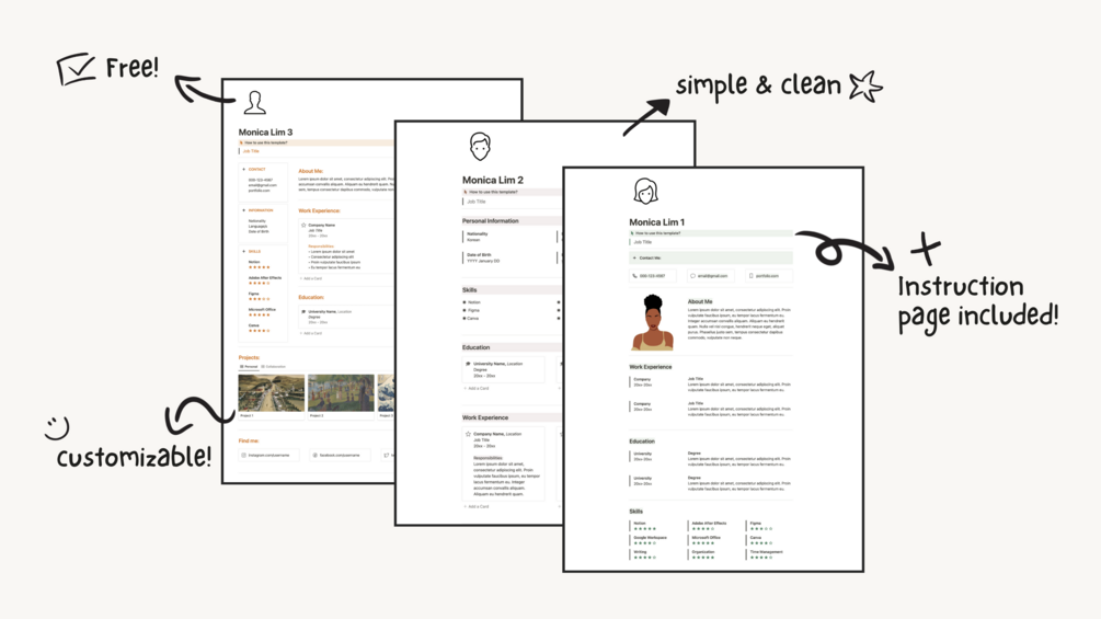 You may have heard that you may not need a resume anymore. Your LinkedIn is your resume. Your website, your Twitter profile, or even your Instagram could be your new resume. That might get your foot in the door, but eventually, they might ask for your resume. And I am here to make it easier for you. These three carefully designed Notion templates are built to help you share, update, and personalize your resume.